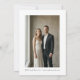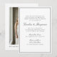This wedding invitation features elegant script names paired with classic serif typography in a timeless black and white layout. The clean double border and traditional wording create a refined look perfect for formal ceremonies and black tie weddings. The back includes a vertical photo, adding a personal and modern touch to the classic design. A sophisticated choice for couples planning a timeless and elegant celebration.