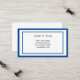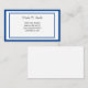 This calling card is shown in a basic classic bordered design in white with a royal blue colour border trim, text is in a black colour.