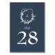 classic botanical navy blue monogram crest table number