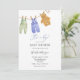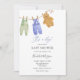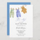 Baby Shower Invitation featuring an adorable illustration of classic vintage boy baby clothing hanging on a clothesline. Personalise with your information or click "Click to customise further" to edit font styles, size and colours.