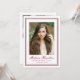 Announce your graduate’s celebration with this elegant burgundy graduation party invitation, featuring a traditional double border that gives the design a refined and distinguished look. The front centers the graduate’s portrait and name, creating a meaningful focal point that highlights their achievement. The back includes a horizontal photo at the top, with space below for party details such as the event date, time, and location. Designed for both high school and college graduates, this burgundy photo graduation party invitation offers a sophisticated and memorable way to bring family and friends together.