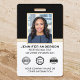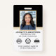 Make a professional impression with this classic identification badge design. Easily personalise it with your ID photo, name, job title, company name, and QR code. Space is provided for your logo and two accreditation symbols. All the text can be customised to suit your business needs. Printed colours: black, gold and white.