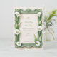 This exquisite wedding invitation exudes classic elegance with its watercolor portrayal of calla lilies set against a backdrop of vintage-inspired, ornate greenery. The timeless appeal of the calla lily, known for its clean lines and graceful curves, is perfectly complemented by the intricate detailing of the baroque-style frame in shades of sage and olive. The front of the invitation offers a stately space for the names of the couple, while the back provides a full invitation to the event, enclosed within the sophisticated border. This design is an homage to the genteel artistry of past eras, ideal for a wedding that aims to blend the traditional with the botanical.