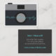 A business card with a camera icon as design. Blue and grey text for personalisation of details. A simple, professional and modern business card for photographers or businesses dealing with camera equipment.