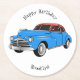 Classic car 1948 cartoon illustration round paper coaster