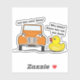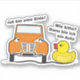 Humorous dialog of a 2cv duck with a rubber duck. Black, orange, yellow.