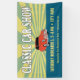 Classic Car Show event banner with retro style rays and antique car illustration. Edit the date, place, and other info.