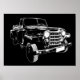 Classic car black and white stencil style graphic illustration over black background