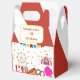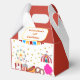 Send your guests home with a piece of the fun! This classic favour box features a festive design with an iconic circus tent, a cheerful Ferris wheel, and sparkling gold stars. The base of the box is decorated with all your favourite carnival snacks, including popcorn, a hot dog, a pretzel, a carnival drink, and sweet cotton candy. It's the perfect way to hold treats or small party favours. Customise it with the birthday child's name and age to create a truly memorable keepsake for the end of the celebration.