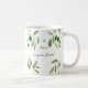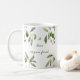 Classic ceramic mug with olive leaves and fruit and I love vegan food message created by Alan Skyrme.