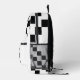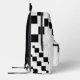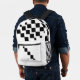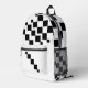 stylish backpack featuring a bold black and white chequerboard pattern, blending classic design with modern functionality. Perfect for school, travel, or everyday use.