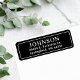 Classic Chic white on black return address labels featuring a traditional serif font for an elegant minimal feel.