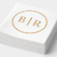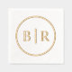 Immortalise every tender sentiment with our exclusive, chic bride and groom name gold foil napkins. These napkins are the quintessential accent for your table setting on your momentous occasion, adorned with a graceful gold foil classic minimalist circular round border. With room to customise or personalise with a name monogram left and right of a vertically placed bar line, in a simple sophisticated typography style. Made from superior quality materials in an elegant silver, yellow, or rose gold font, against a stylish white backdrop. Perfect for weddings, anniversaries, or any heartfelt celebration, they bring an element of elegance and allure. Cherish your moments in grandeur — place your order today!
