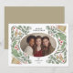 This design, Classic Christmas Bells & Foliage Frame, is a timeless holiday card that blends elegance with warmth. Featuring hand-illustrated greenery, red berries, golden bells, and delicate ornaments, the frame beautifully highlights your family photo in an oval centre. The subtle palette of greens, reds, and golds captures the festive spirit while keeping the design sophisticated and modern.