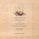 Timeless and elegant yet festive holiday-themed wedding design featuring classic hand-drawn gold floral crest accented by a colourful spray of red and white Christmas flowers and evergreens. This custom formal template includes editable text fields as well as custom calligraphy text graphics.