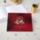 Timeless and elegant yet festive holiday-themed wedding design featuring classic hand-drawn gold floral crest accented by a colourful spray of red and white Christmas flowers and evergreens. This custom formal template includes editable text fields as well as an opulent, ruby red velvet texture background.
