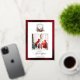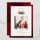 This elegant and formal yet festive holiday design features classic hand-drawn gold foil floral crest accented by a colourful spray of red and white Christmas flowers and evergreens. This custom template includes editable text fields and photo template as well as custom calligraphy text graphic and a luxe red gradient background.