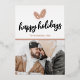 Celebrate the festive season with this elegant black, white & real rose gold foil christmas cards featuring a family photo to be replaced with your own, the words "happy holidays", two pine cones, your name and the year. The reverse is a classic black and white gingham tartan pattern print.