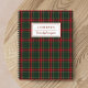 Custom-designed family recipe notebook for the holiday season featuring classic style forest green and red Christmas plaid with personalised name.