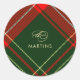 Classic Christmas Plaid with Name Holiday Round Sticker