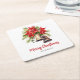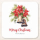 Classic Christmas Poinsettias & Golden Bells Square Paper Coaster