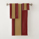 Bath Towel Set Of Three Sizes decorative bathroom amenity and home furnishing decor accessory printed with a Classic Christmas Red And Gold Stripes graphic art design illustration by TheFabricSeal print on demand shop at Zazzle.com #ZazzleMade ©️Original. https://www.zazzle.com/store/thefabricseal