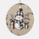 Classic Christmas snowman on a warm plaid ornament