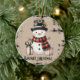 Classic Christmas snowman on a warm plaid ornament