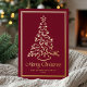 Share festive cheer with this sophisticated Christmas card featuring a hand-drawn Christmas tree and “Merry Christmas” in brilliant gold foil lettering, accented by a gold foil double border on a rich cranberry background. Add your family name and year for a personalised touch. The back includes space for your holiday message, making it a timeless design suited for family and business holiday cards.