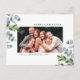 Simple classic white photo watercolor eucalyptus greenery holiday postcard with custom text in elegant typography. Click on the ''Personalise'' button to edit text and change the photo template to your own picture.