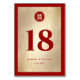 Classic Two Lined Red Round Circle Double Happiness On A Faux Matt Gold Foil Paper Background, Double Sided Chinese Wedding Table Number Card.