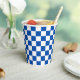 Classic cobalt blue checkerboard paper cups
