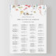 This classic colorful floral alphabetical seating chart is perfect for a tropical wedding. The design features pink, purple, yellow, burgundy, navy and blue hand-drawn wild flowers, arranged in beautiful shapes.
