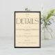 Keep your guests informed with this minimalist wedding details enclosure card. The design features the word 'DETAILS' in a striking serif font against a chic cream background, framed by a subtle black border. This card is perfect for conveying important information about your reception and accommodation arrangements. Its clean and elegant aesthetic complements any wedding theme, ensuring your guests receive all the practical details they need for your celebration in a sophisticated manner.