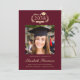 Celebrate your graduate's remarkable academic achievement with this elegant college graduation announcement, designed with a timeless crest motif and classic script and typography. Featuring their class year framed by a crest composed of laurel branches and mortarboard and diploma icons, this design delivers a traditional collegiate look with enduring appeal. The centred photo layout highlights the grad’s portrait, while the text below showcases their name, university, and degree. The rich burgundy red background paired with light gold lettering creates a sophisticated contrast that feels both formal and celebratory. Fully customisable, this graduation announcement can be adapted for high school graduates as well.