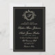 Elegant vintage crest Victorian botanical monogram black and ivory cream champagne classic formal traditional framed wedding invitation featuring a classy hand lettered calligraphy script. +++++++++++ Suitable for timeless stylish old money themed weddings.