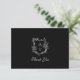 Elegant floral crest black and white wedding thank you card.