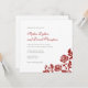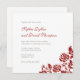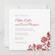 Elegant, vintage floral rose lace wedding invitation design. Delicate rose lace corner pattern in crimson red. Customise with your names in crimson rose red script and your wedding information in chic dark sage lettering.