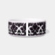 This is a heavy, durable bowl decorated with Tibbies of many colors, the perfect size for hungry/thirsty Tibs. The design is interesting and printing clear.