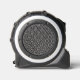 This measuring tape has a classic damask pattern of fancy white scrolls on a black background.