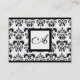CLASSIC DAMASK SQUARE MONOGRAM Black White Pearl Business Card
