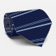 This dark midnight blue men's tie has a classic pattern of baby blue stripes.