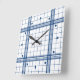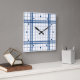 Classic Dark Blue Farmhouse Plaid Pattern On White Square Wall Clock