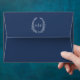 Dark blue hand-drawn growing leaf botanical art wedding invitations. Simple oval leaves design your own monogram initials design. Classic navy blue and white. Other colours and matching items are available. © Original leaf drawing and design by Sarah Trett for www.mylittleedenweddings.com on Zazzle.