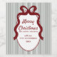 Classic Dark Green Stripes & Red Bow Christmas Wine Label
