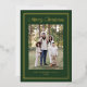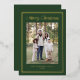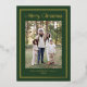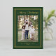 Share holiday joy with this photo holiday card featuring a deep forest green background and shimmering gold foil double border frame. “Merry Christmas” is displayed in coordinating gold foil lettering above your family photo, with your family name and year printed below. The forest green and gold colour palette gives this design a timeless, traditional feel. The back includes a square photo with room for your personalised message, completing this elegant Christmas card.
