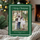 Share heartfelt holiday greetings with this photo holiday card featuring a rich green background and a traditional double white border frame. “Merry Christmas” is displayed in coordinating white lettering above your family photo, with your family name and year printed below. The classic green and white colour palette creates a festive and timeless look that’s perfect for the holidays. The back includes a square photo with space for your personalised message, making this card a beautiful way to share Christmas joy with family and friends.