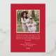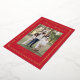 Send festive greetings with this photo holiday card featuring a red background and elegant gold foil double border frame. “Merry Christmas” is displayed in coordinating gold foil lettering above your family photo, with your family name and year printed below. The luxurious red and gold design creates a timeless and festive look, perfect for the holiday season. The back includes a square photo with space for your personalised message, completing this elegant holiday card.