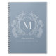 Classic Dusty Blue Floral Crest Monogram Notebook