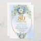 Classic Dusty Blue Floral Greenery 80th Birthday Invitation